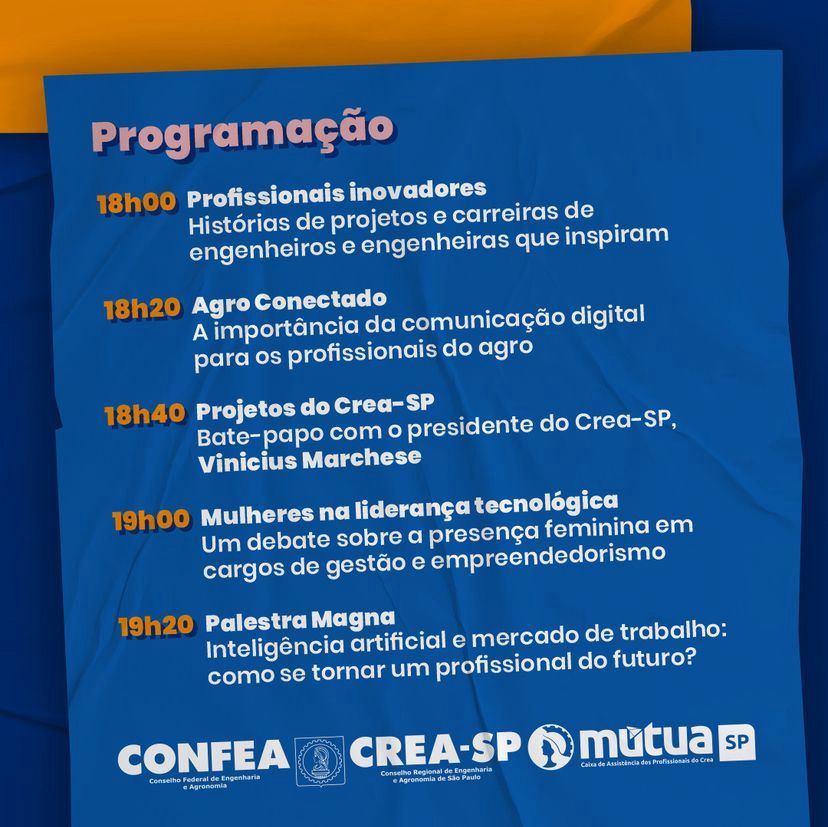 ✅ No dia 11 de dezembro, das 18h às 20h, conecte-se pelo futuro na TV Crea-SP no YouTube.