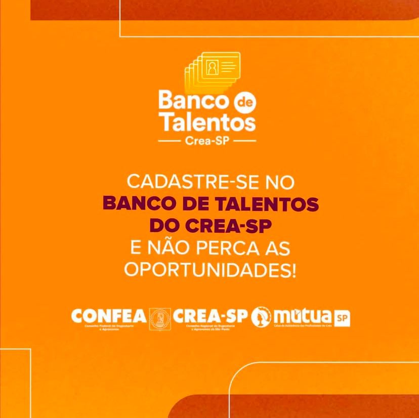 Começando a semana com muitas vagas no Banco de Talentos do Crea-SP? 🎉 Ainda não se cadastrou? 🤔 Então corre lá no link da bio e não perca tempo! É simples, rápido e com várias oportunidades na Área Tecnológica! 😁 Esperamos por você e boas entrevistas 🍀